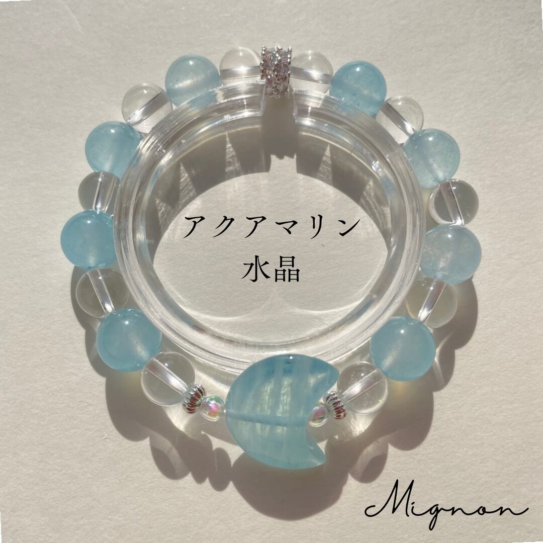 月 アクアマリン 水晶 ブレスレット
